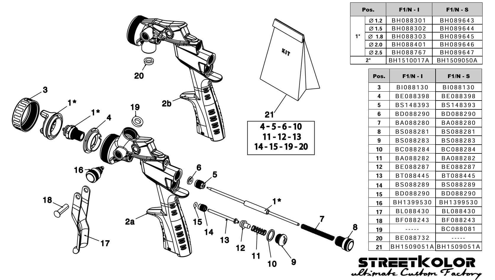 F1: Označuje sériu alebo rodinu striekacej pištole, typicky indikuje špecifickú dizajnovú platformu alebo triedu výkonu (napr. "Séria jemných povrchových úprav 1").