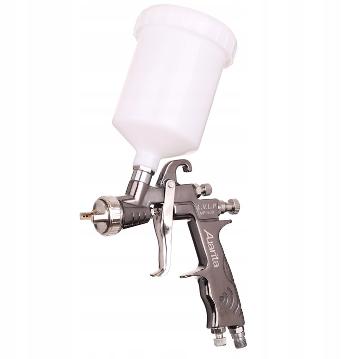 Striekacia pištoľ AUARITA MP-500 LVLP je kvalitná striekacia pištoľ, ktorý je vhodný pre domáce aj profesionálne použitie. Je pomalá a výborne sa hodí na menšie projekty. Oproti HVLP je kľudnejšia. So systémom LVLP máte menšiu šancu na stekance, čo ocenia hlavne začiatočníci. Vďaka nižším nákladom na kompresor je AUARITA MP-500 LVLP veľmi vyhľadávanou variantou striekacej pištole.